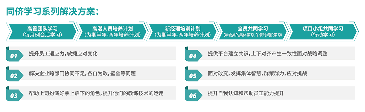 • 建立企业独特文化:帮助企业培养学习氛围,更好面对VUCA 时代。