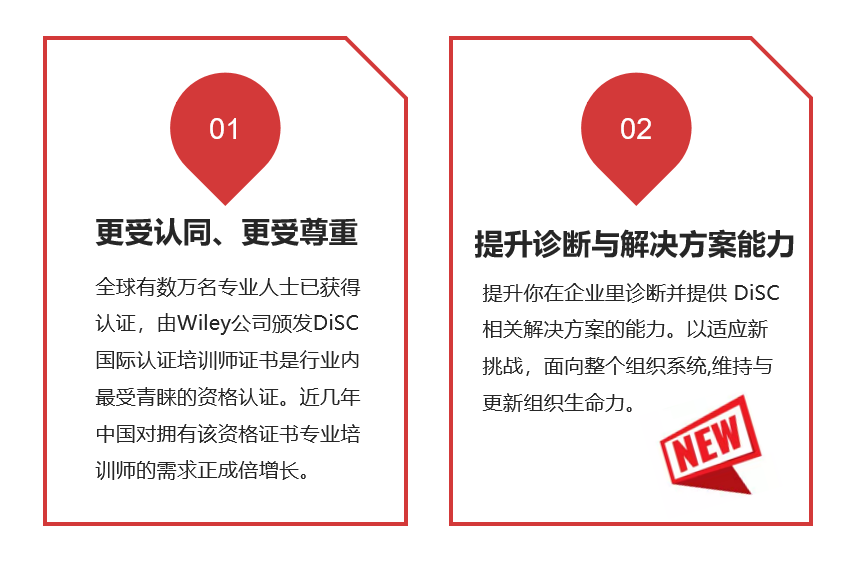 通过 DiSC 的学习,大家会提升自我的认知,找到激励和压抑自己的因素。同时还能识别他人的类型,快速获得他人的信任,促进沟通的有效性。