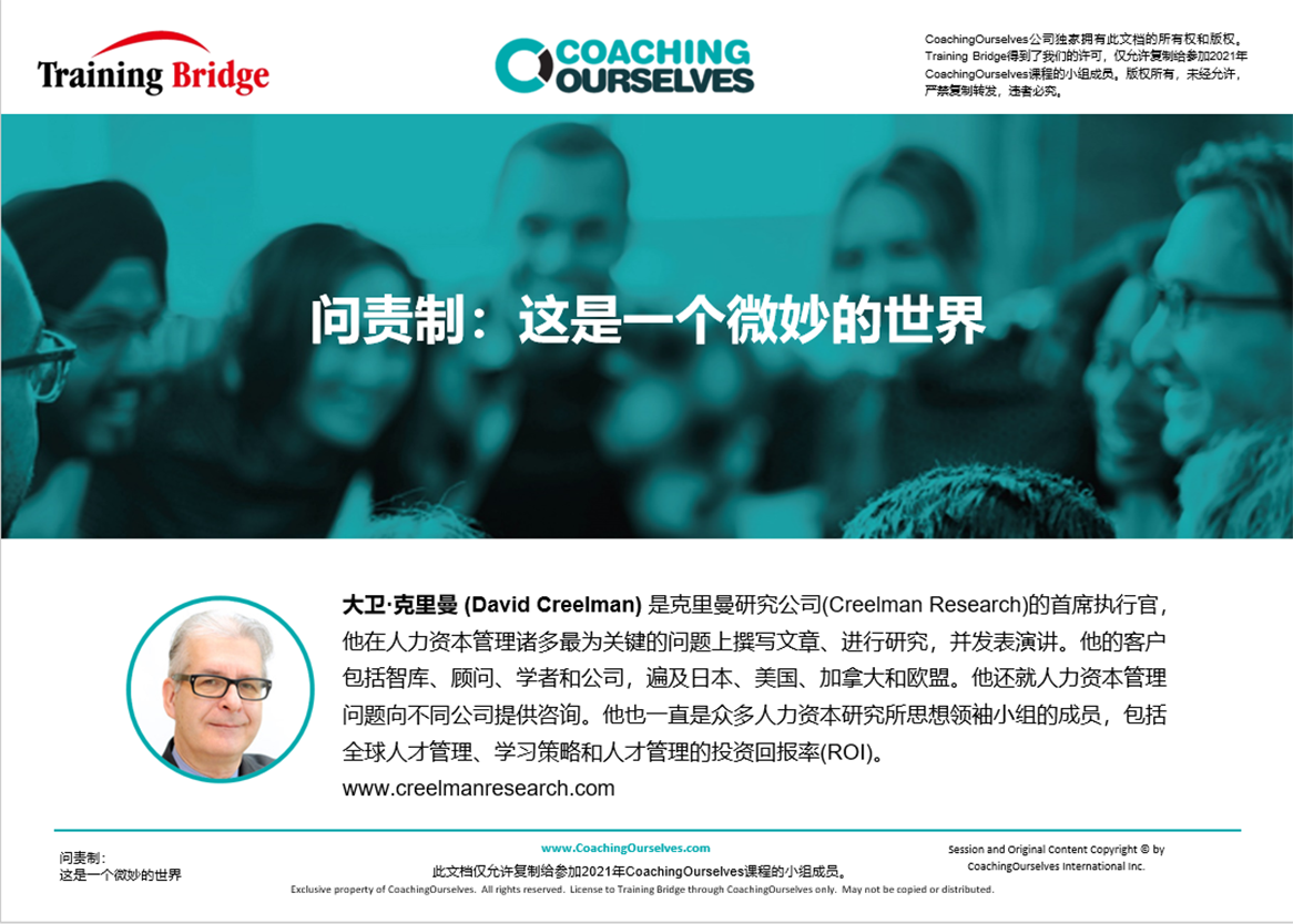 CoachingOurselves 团队学习项目帮企业开展极高影响力的人才培养方案,建立可持续性的开放型和学习型社群与文化。